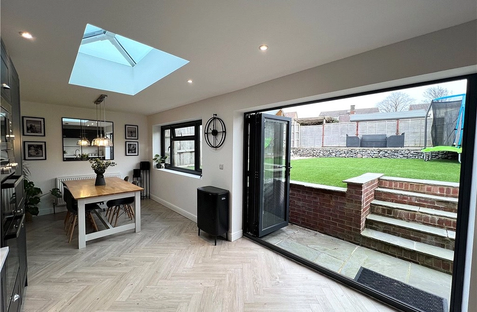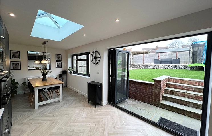 The home is gas centrally heated and double glazed throughout and offers accommodation comprising three bedrooms, stylish bathroom and a super, sociable open plan living space incorporating a good size sitting room, dining area and high quality kitchen with bi-folds out to the garden. The home sits within a generous plot with driveway leading to the garage. Side access to a lovely low maintenance rear garden and raised patio enjoying the sun all day.
