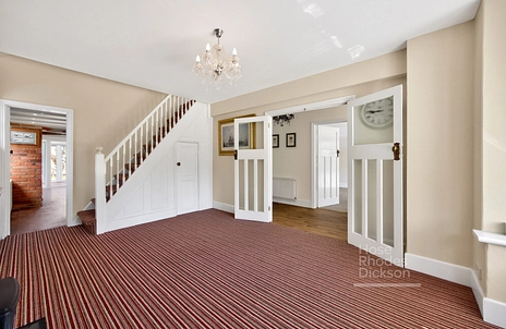 Set back from the road with ample off-road parking, the property opens into a welcoming entrance hallway that flows into a variety of well-proportioned living areas. To the front, a sitting room/bedroom four features patio doors, offering flexible use as an additional reception space, home office or guest room.