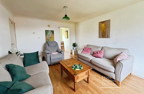 The property features a bright and welcoming living room, providing an ideal space to relax and entertain. To the rear, the kitchen/dining area offers a practical layout with ample storage and workspace, with access out to the garden—perfect for family meals or summer gatherings.