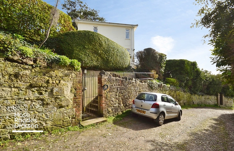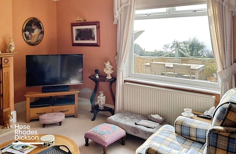 Situated along a private road, this detached, three bedroomed home has two separate living rooms, plus kitchen and separate utility extension, separate w.c. as well as bath and shower room/wc and extensive decked area from which to enjoy panoramic 180 seaviews