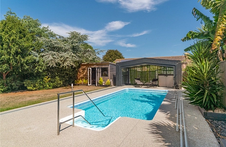 A standout feature of this home is the large conservatory, perfect for entertaining or relaxing while enjoying views of the garden. Outside, the beautifully landscaped garden is a true haven, complete with a private swimming pool and a garden bar—ideal for summer gatherings and family fun.