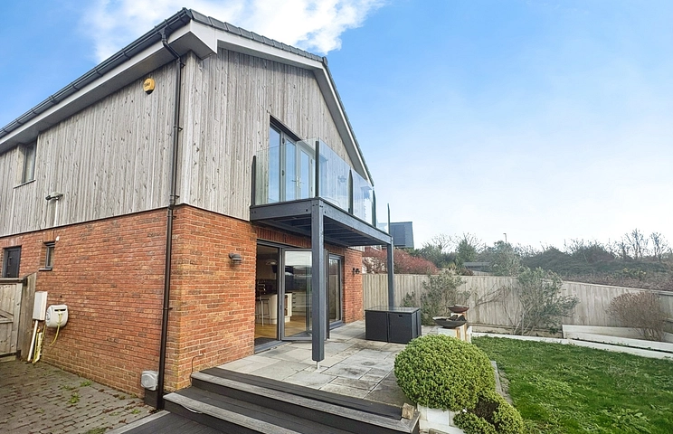 The home offers spacious accommodation with under floor heating comprising sitting room, cloakroom, large and sociable kitchen dining room with bi-fold doors along with a utility room on the ground floor; with four bedrooms (master with en-suite shower room, dressing room and large balcony) and family bathroom at first floor level. The Eco friendly property, newly built in 2017 has solar panelling providing low cost energy to the home plus an income from the national grid, superb sunny aspect garden with lawn and large patio, balcony with incredible river views and is available to purchase with no onward chain!