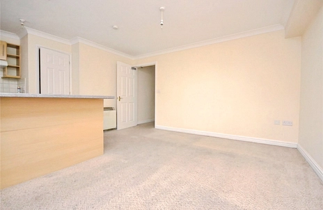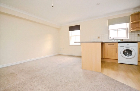 The accommodation comprises an entrance hallway, open plan kitchen/living room, two bedrooms, and a bathroom with shower over bath.
