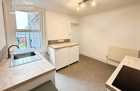 The ground floor opens into a welcoming living room, flowing through to a functionally fitted kitchen (with intergrated white goods). Clever use of space includes an understairs cupboard with ample room for a washing machine and tumble dryer. Beyond the kitchen is a small inner hallway with a convenient downstairs W/C, leading to the third bedroom/home office, which enjoys views out over the rear garden.